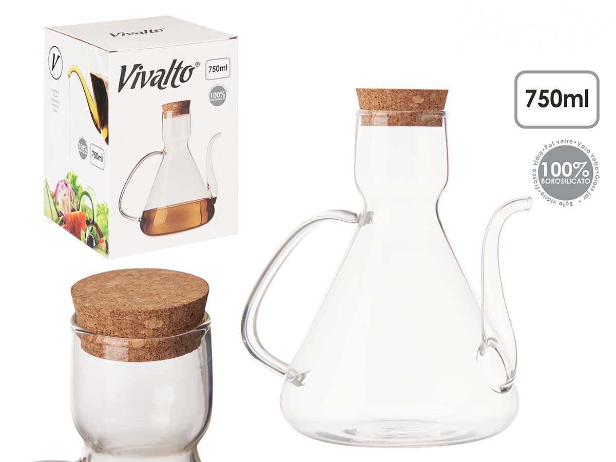 ΓΥΑΛΙΝΟ ΔΟΧΕΙΟ ΛΑΔΙΟΥ ΜΕ ΚΑΠΑΚΙ ΑΠΟ ΦΕΛΛΟ 750ML VIVALTO
