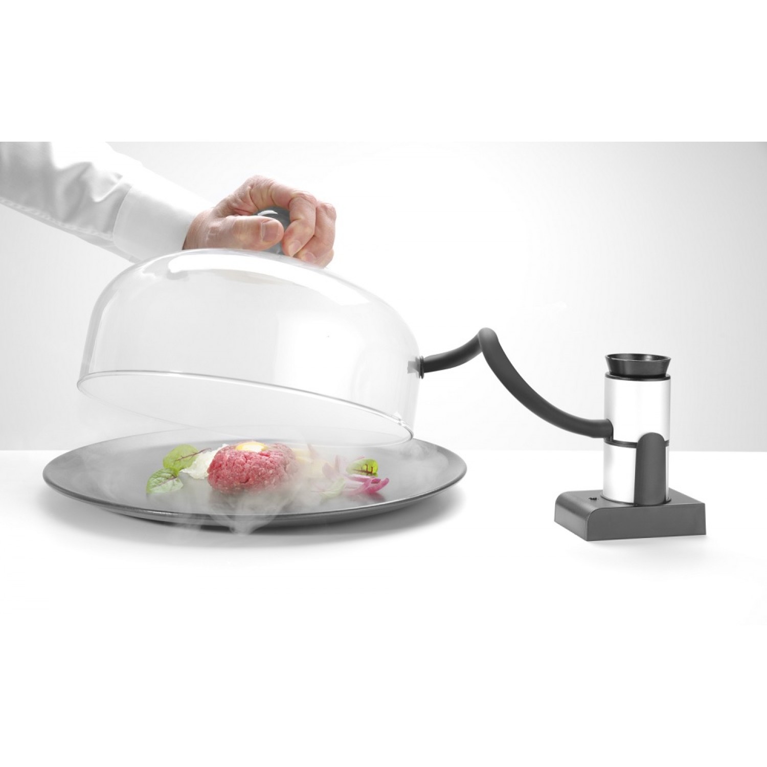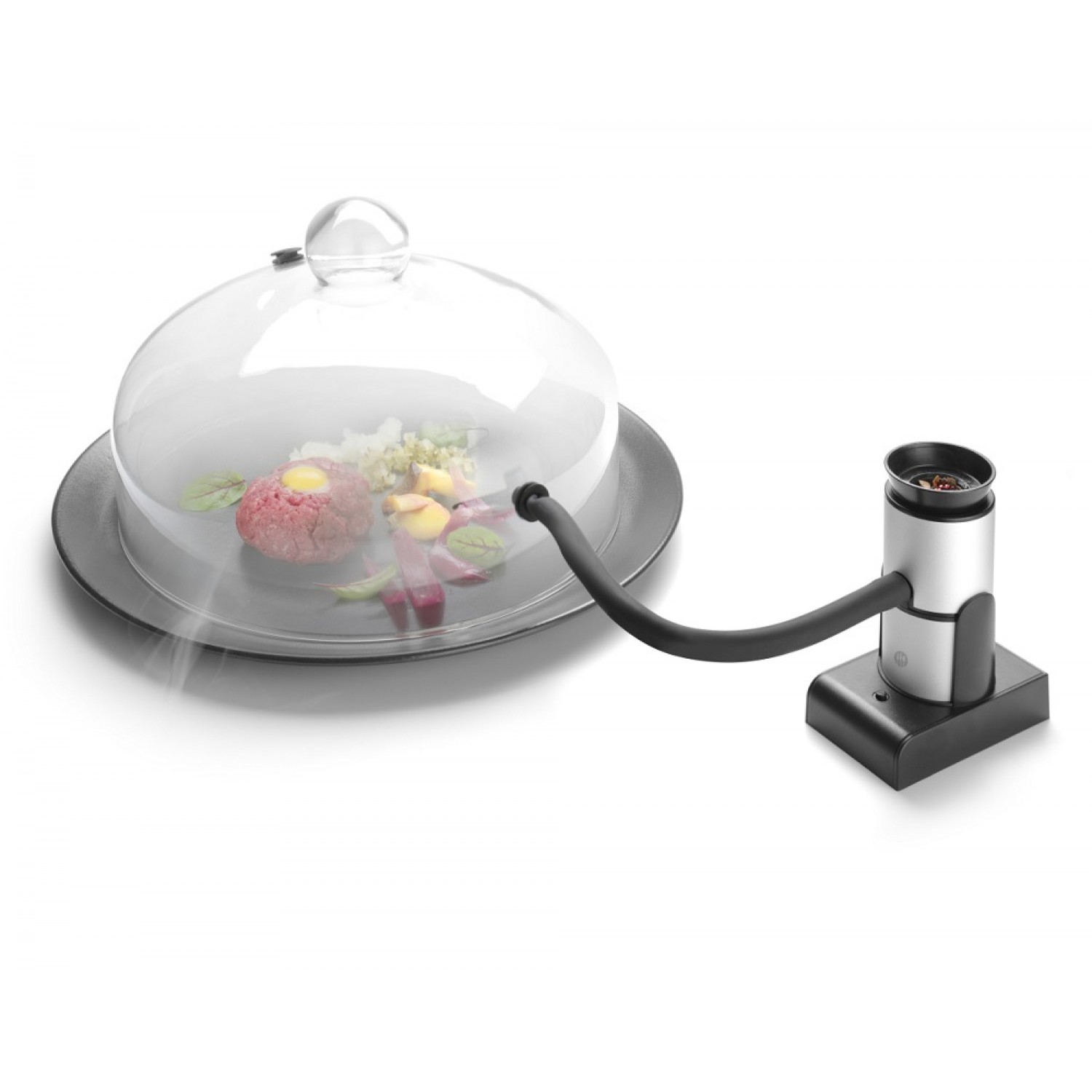 Large woodchip holder. Flexible rubber hose (30 cm long) for easy injection of smoke into resealable bags and containers.