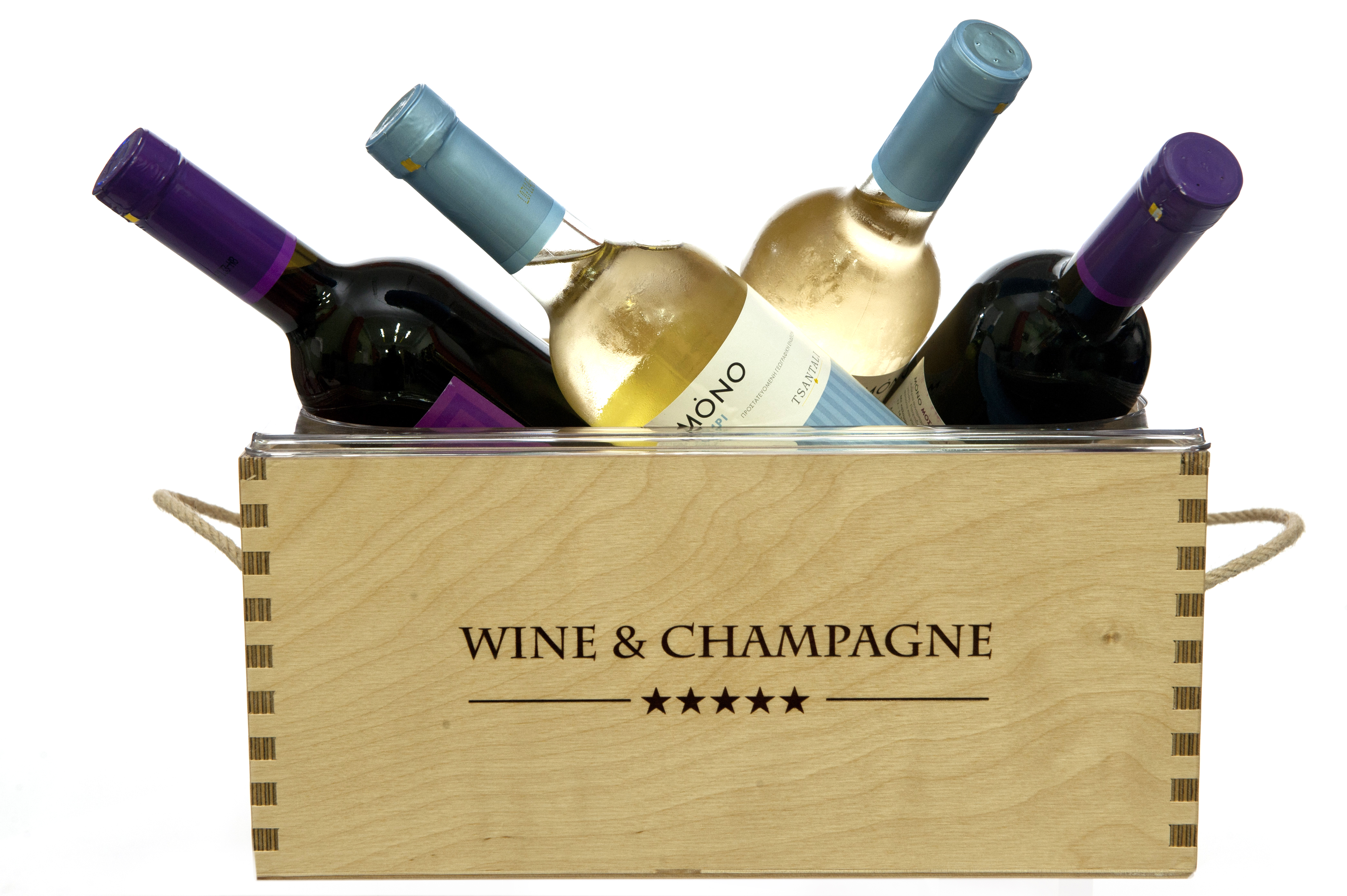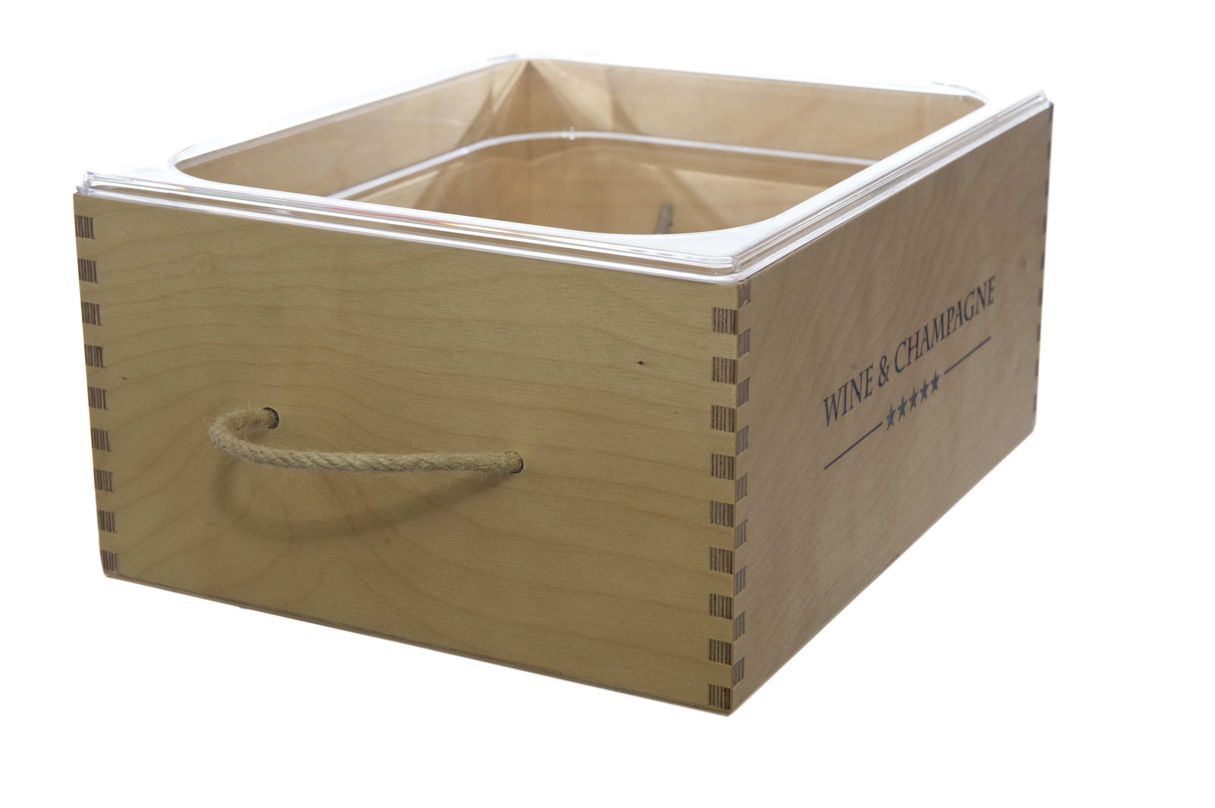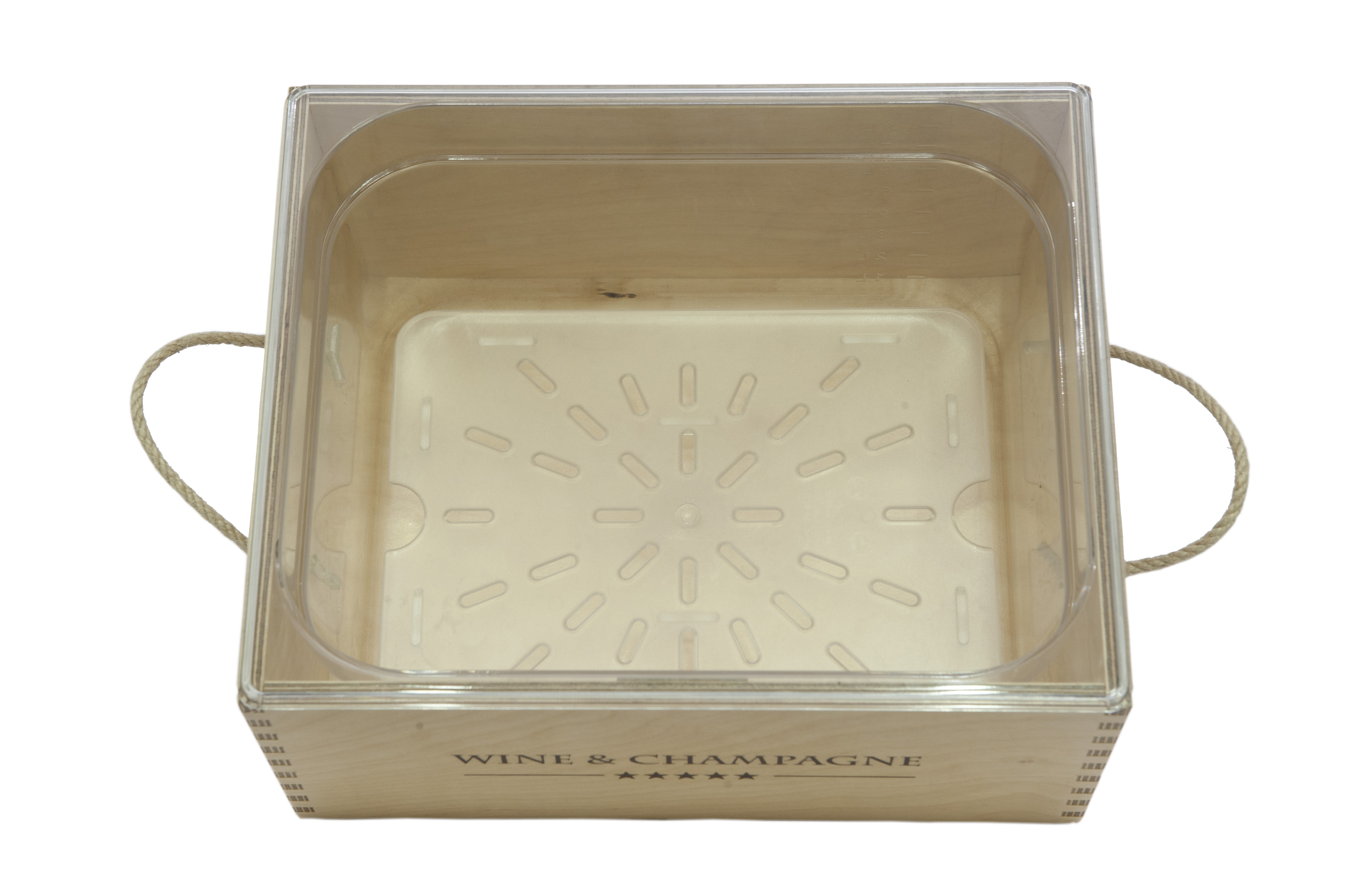 Ξύλινη σαμπανιέρα , με πολυκαρβονκό δοχείο πάγου και σχάρα .