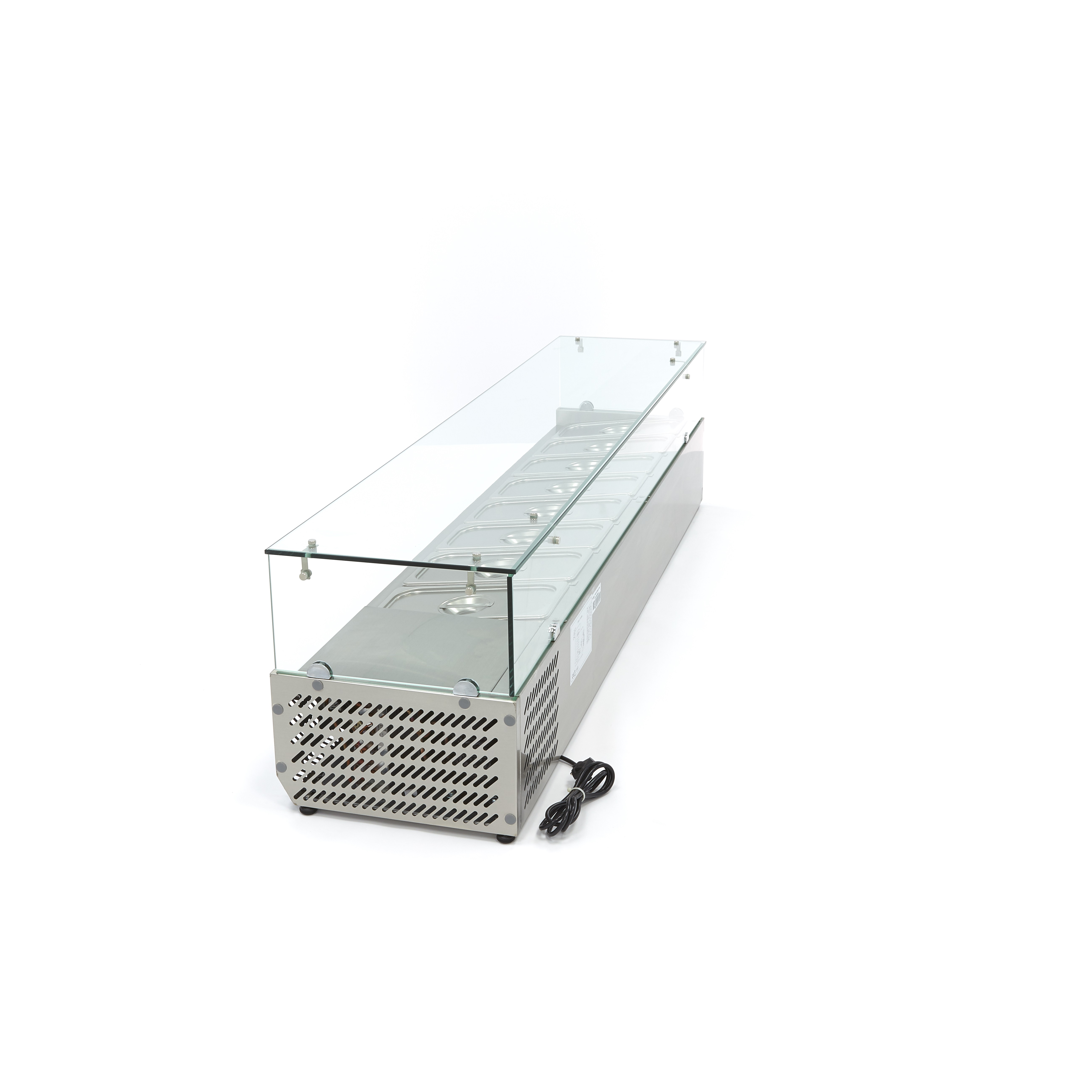 Ένα επιδαπέδιο ψυγείο προετοιμασίας με μέγεθος 180 cm είναι ιδανικό για χρήση σε εστιατόρια και ξενοδοχεία. Διαθέτει χώρο για έως και οκτώ δοχεία x 1/3 Gastronorm και ενδείκνυται για χρήση ως μονάδα αυτοεξυπηρέτησης, για παράδειγμα σε μπουφέ πρωινού ή σαλάτας. Τα ορθογώνια γυάλινα παράθυρα στο επάνω μέρος και στην πρόσοψη επιτρέπουν στους πελάτες να βλέπουν καθαρά τα διαθέσιμα συστατικά. Τα δοχεία GN και τα αντίστοιχα καπάκια διατίθενται ξεχωριστά.