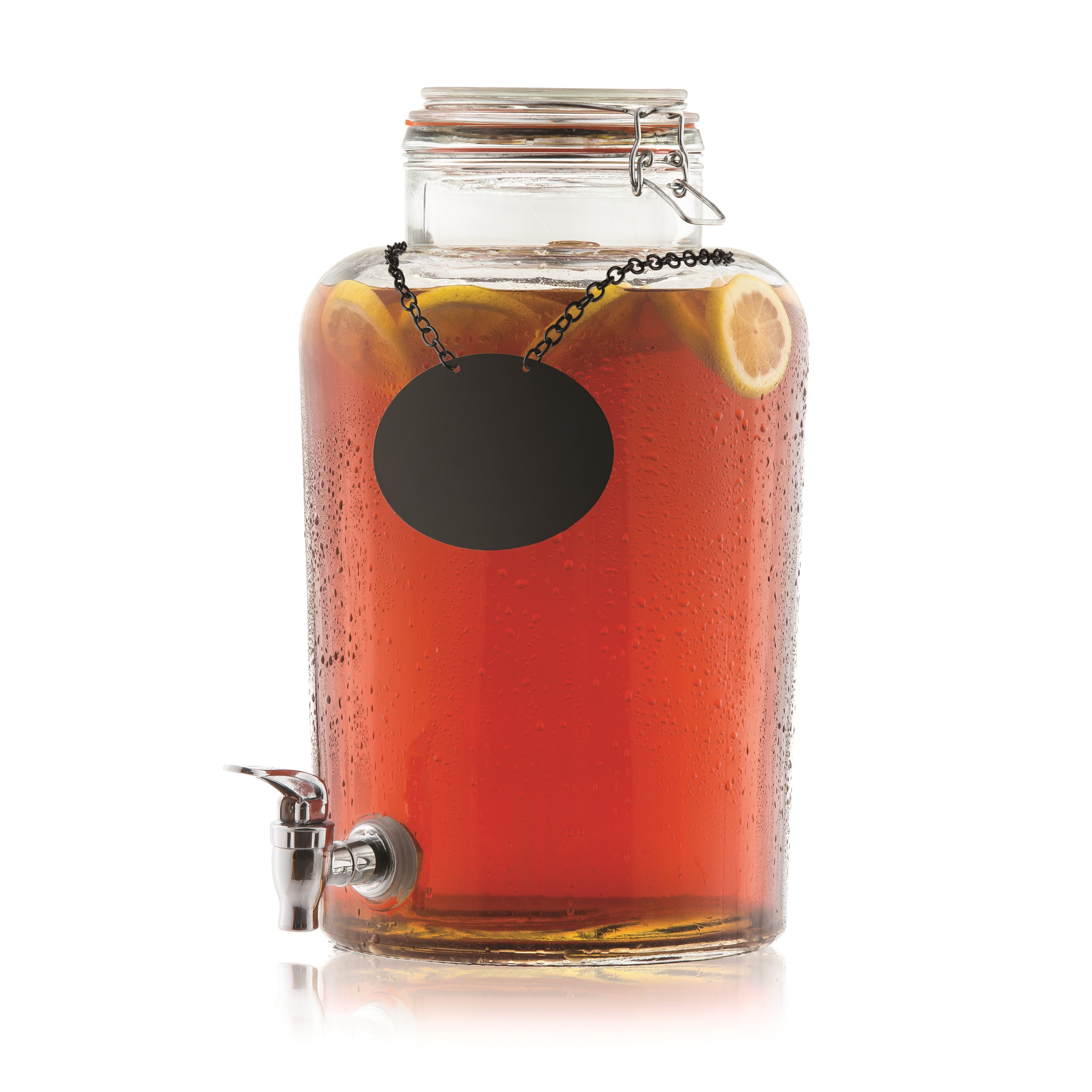 Includes: chalkboard necklace, ice core & infuser, dishwasher safe, glass