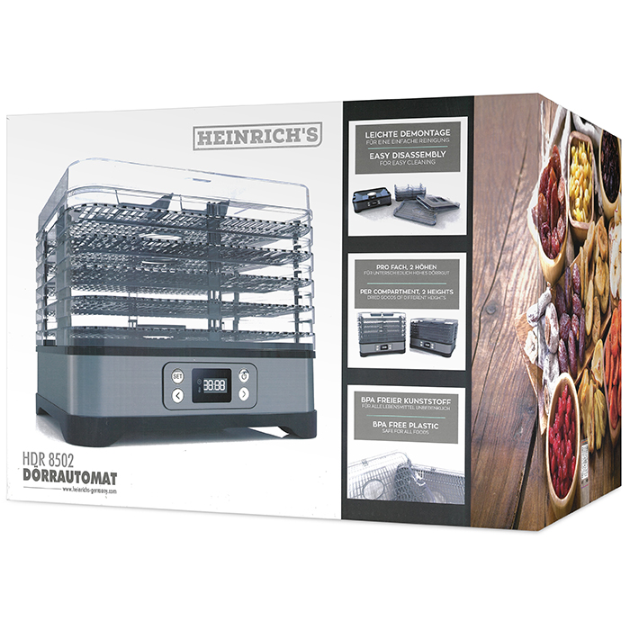 Ανοξείδωτος αποξηραντής τροφίμων, με οθόνη LCD, 250W.