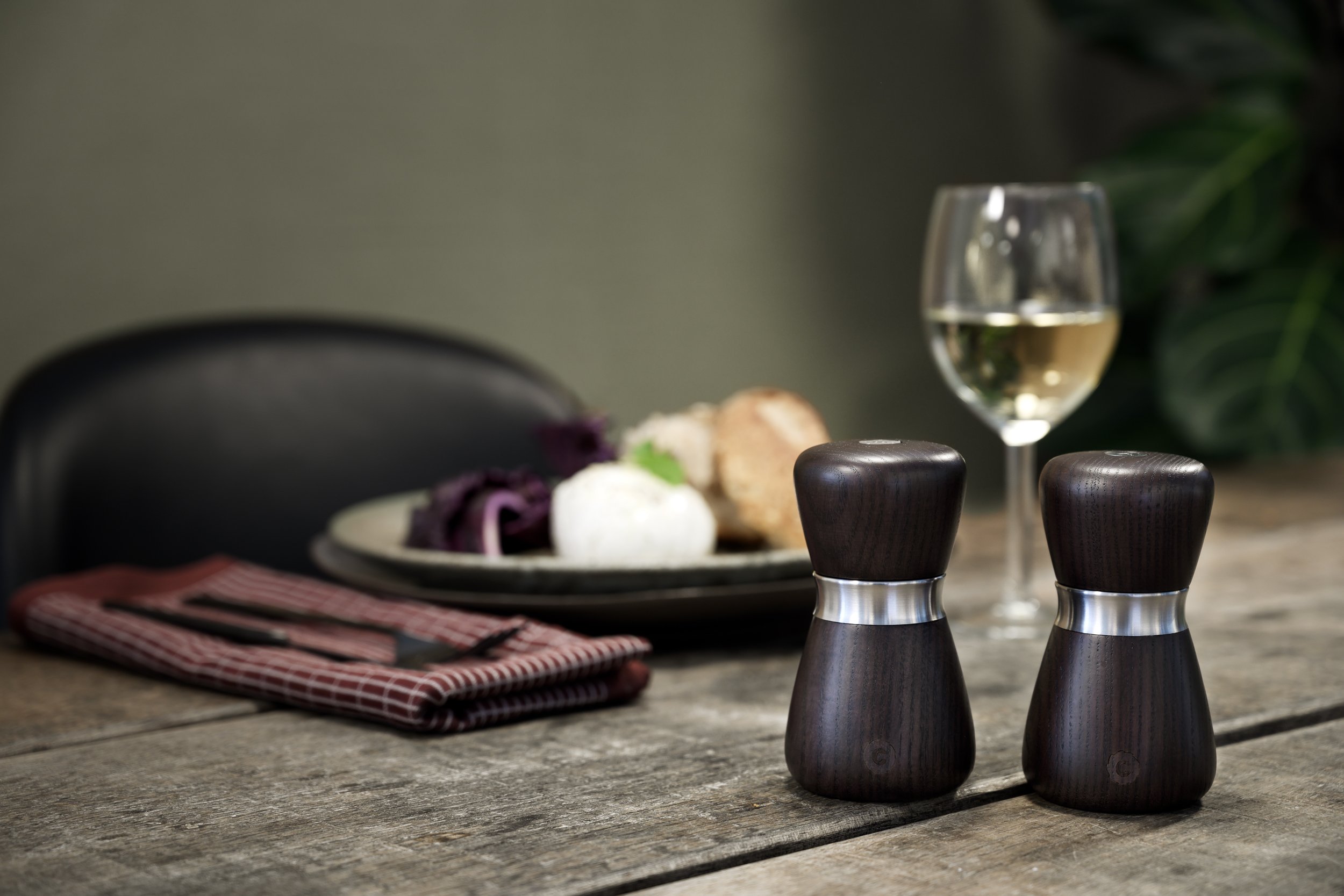 Η αντίθεση μεταξύ των μαλακών, οργανικών, ξύλινων μερών και της ακρίβειας της επιφάνειας του βουρτσισμένου χάλυβα προσθέτει μια ποιοτική αίσθηση στο προϊόν που το ξεχωρίζει από τους παραδοσιακούς ξύλινους μύλους.