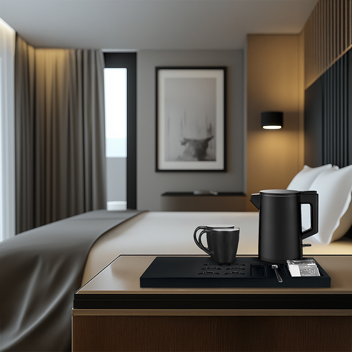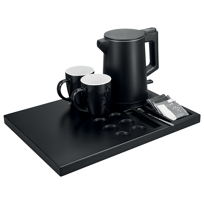 XL Δίσκος καλωσορίσματος από ξύλο δρυός σε μαύρο χρώμα, με βραστήρα 0.8L, 1300W, 2 κούπες και θέση για μηχανή espresso