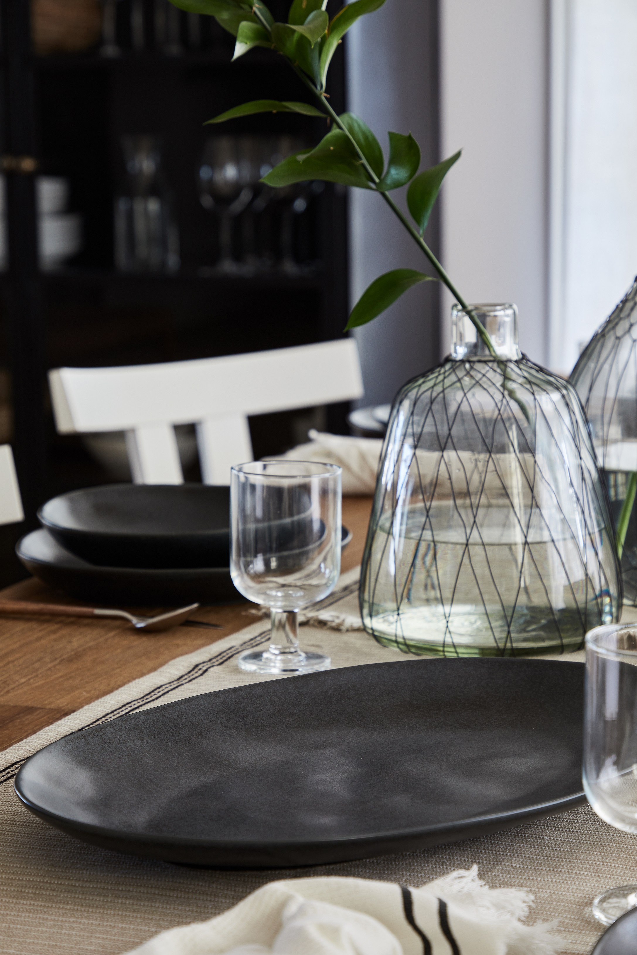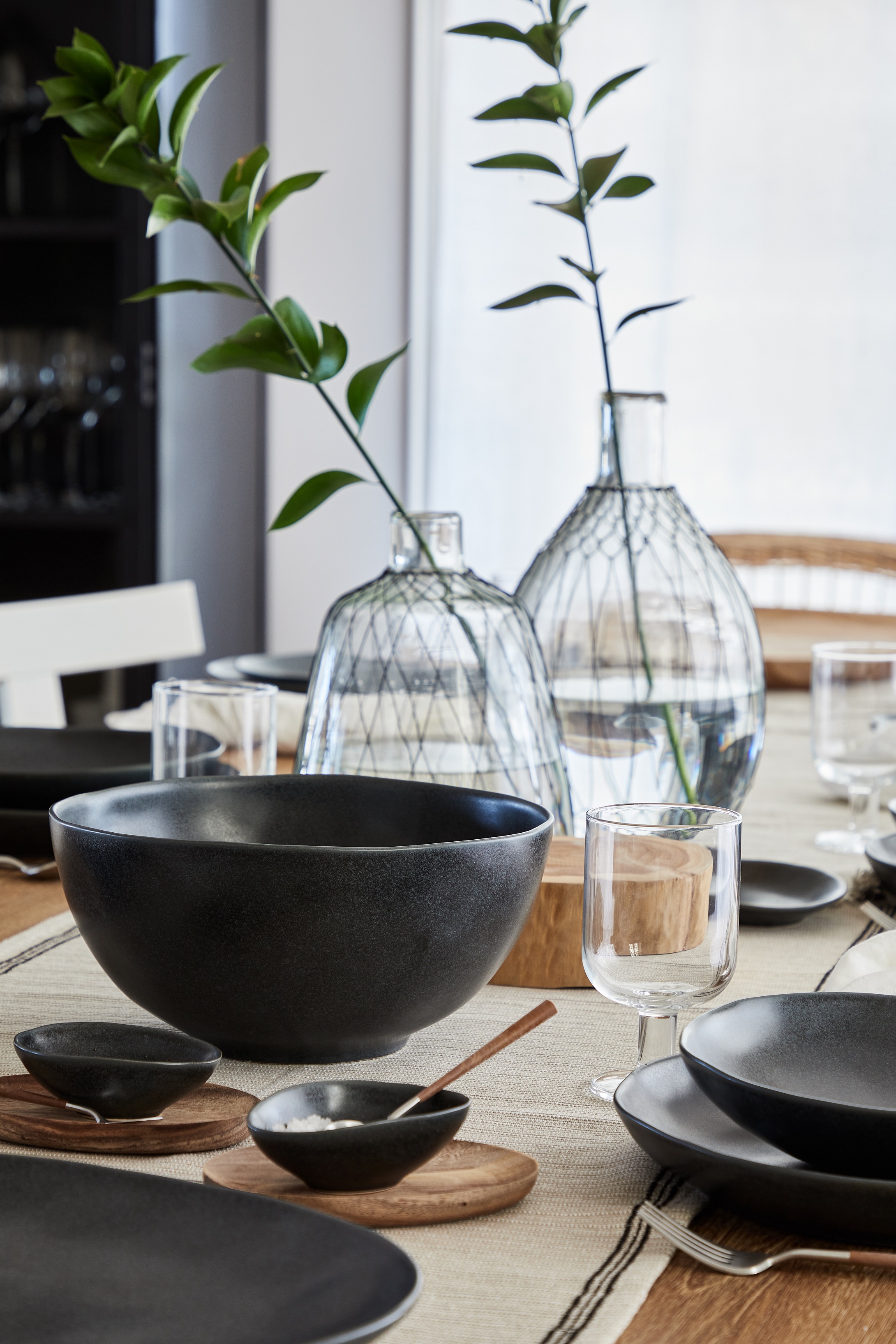 The organic look and feel of the handcrafted pieces are framed by two contrasting colors, a lustrous white and a matte black, melting together into a simple and sophisticated expression. A collection that will surely enhance any gathering.
