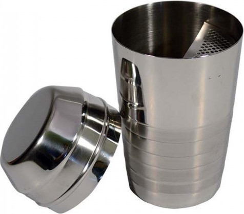 Σέικερ για καφέ , κοκτέιλ , και άλλες χρήσεις , με ενσωματωμένο σουρωτήρι για την συγκράτηση του αφρού η του πάγου .