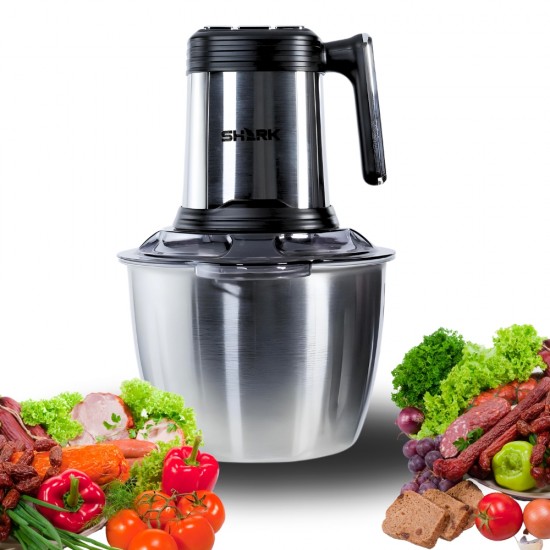 Ανοξείδωτο μπλέντερ της νέας σειράς SHARK, με μεγάλη χωρητικότητα και ανθεκτικότητα. Μπορείτε να ψιλοκόψετε, να αλέσετε, να κοπανίσετε και να ανακατέψετε διάφορα υλικά, όπως κρεμμύδια, κρέας, ζαμπόν, σκόρδο, κρεμμύδι, μικρά μυρωδικά. Με 4 λεπίδες από ανοξείδωτο χάλυβα και μπολ ανοξείδωτο. Ο 4D σχεδιασμός του, επιτρέπει στις επάνω και κάτω λεπίδες να επεξεργάζονται ομοιόμορφα το περιεχόμενο, από κάθε γωνία 360°. Χωρητικότητα 3Lit και 3 ταχύτητες. Ισχύς Μηχανήματος 400W