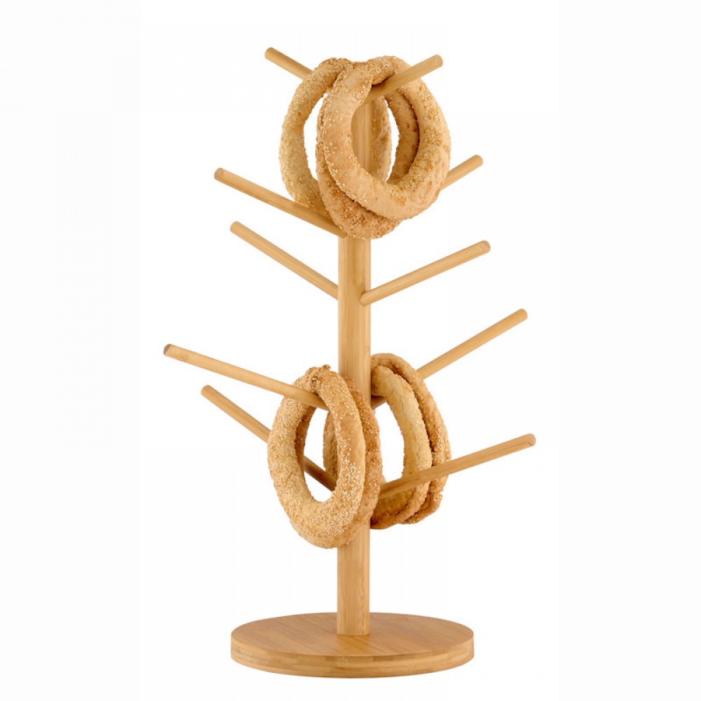 Επιτραπέζιο stand για κουλούρια Θεσσαλονίκης ή λουκάνικα 10 θέσεων σε φινίρισμα φυσικής οξιάς.