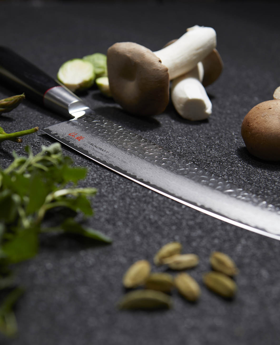 - Black Pakkawood handle with red ring