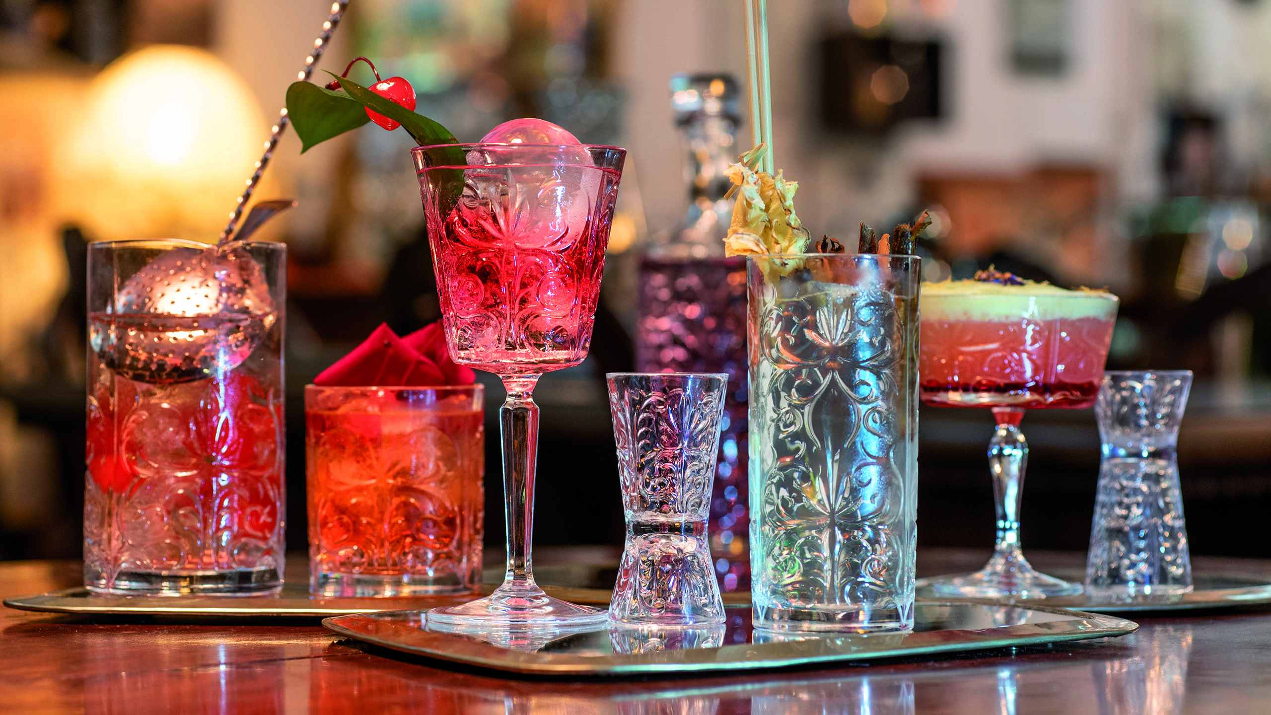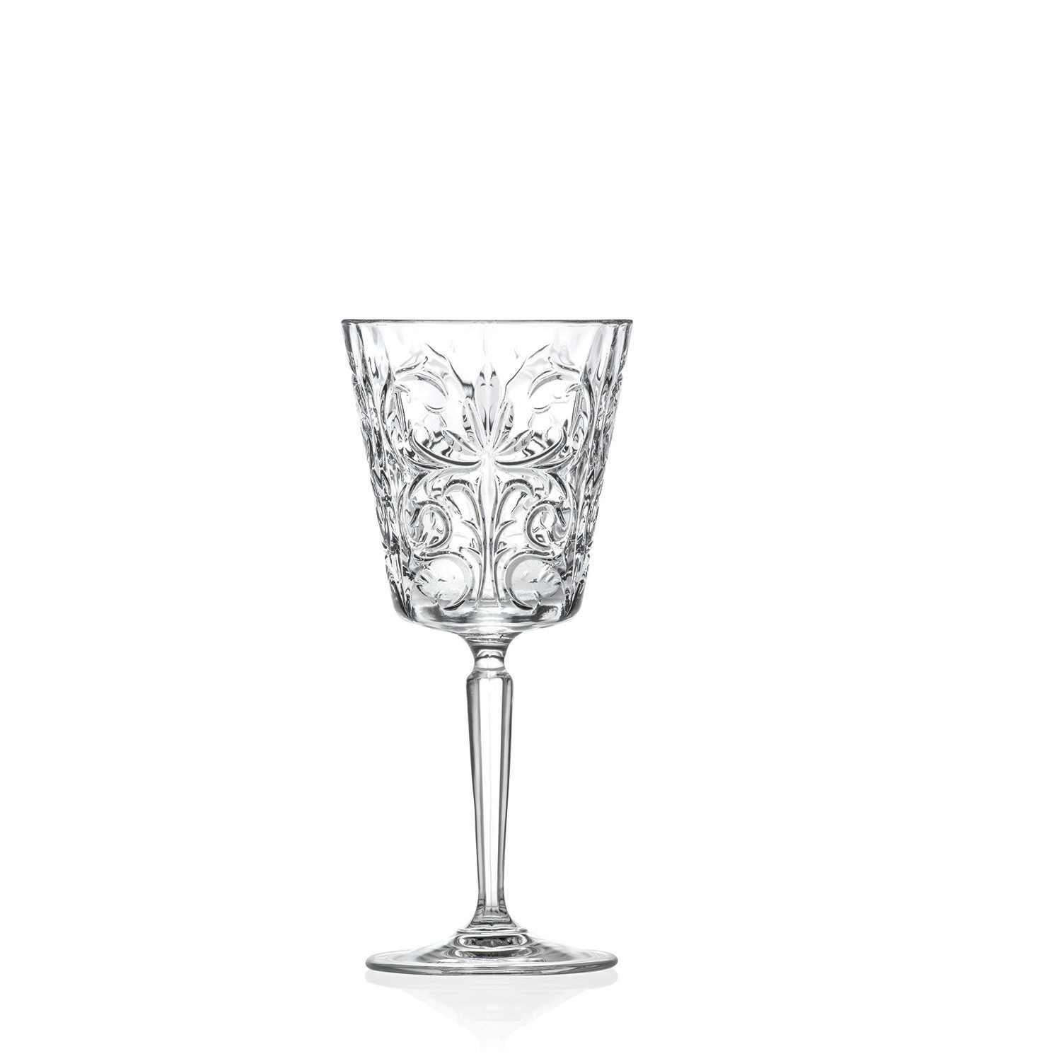Trendy goblet with bold and eccentric decoration for water, drinks and cocktails