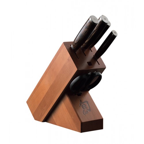 Το σετ Shun Premiere 5 Pieces Cherry Block περιλαμβάνει τέσσερα από τα πιο ουσιώδη Tim Malzer μαχαίρια, ψαλίδι πολλαπλών χρήσεων συν το όμορφο μπλοκ.
