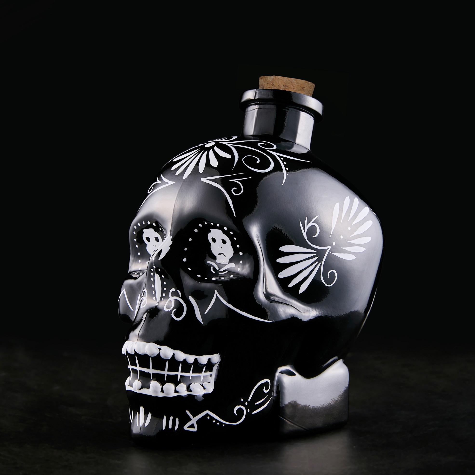 SKULL LUXURY DECANTER ΦΙΑΛΗ ΓΥΑΛΙΝΗ ΒΑΜΜΕΝΗ ΣΤΟ ΧΕΡΙ ΜΑΥΡΗ 700ML