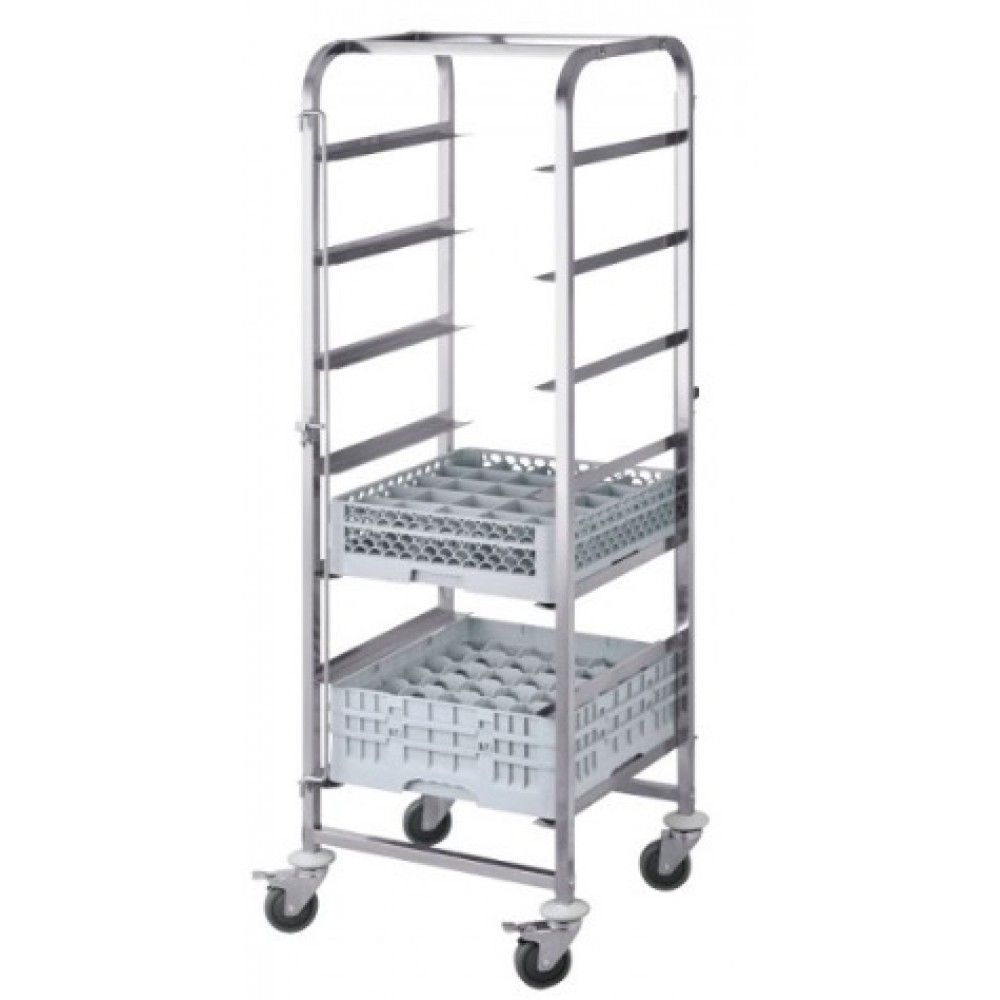 Ανοξείδωτο τρόλεϊ μεταφοράς καλαθιών 500*500 7 θέσεων 510 x 560 x 1700