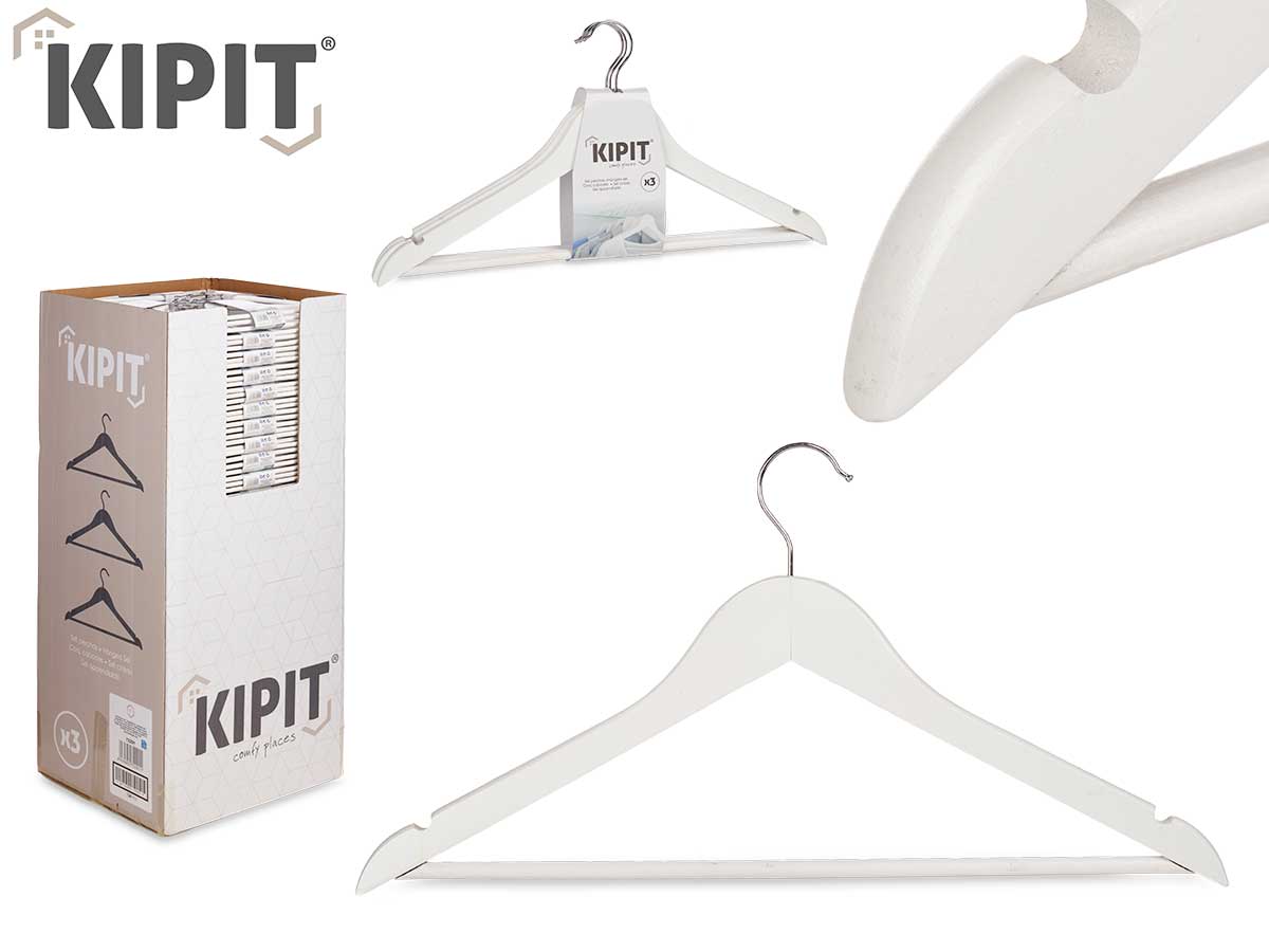 SET WHITE WOODEN HANGERS 3PCS 44CM KIPIT®
