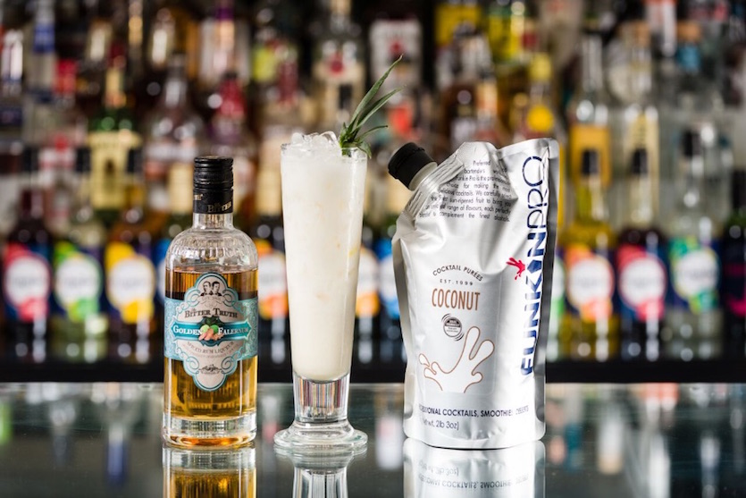 A coconut doesn’t grow on a pumpkin vine and The Bitter Truth Golden Falernum Liqueur doesn’t forget it’s a rum liqueur. This Falernum is gold in color, taste and texture, but never one note, it is a calypso of flavor. On the nose are clean wet flip flop, seashell and ginger with just a hint of christmas. The taste carnivals from fresh ginger to vanilla and almond, surfing towards an atomic fireball. All spice giving into a splash of lime and a delicate hint of Bajan sweet pepper sauce-like heat. With length that feels like a two week holiday, this little number can perk up any aged spirit and instantly turn it into a drink worthy of adornment with a plastic monkey and a paper umbrella.