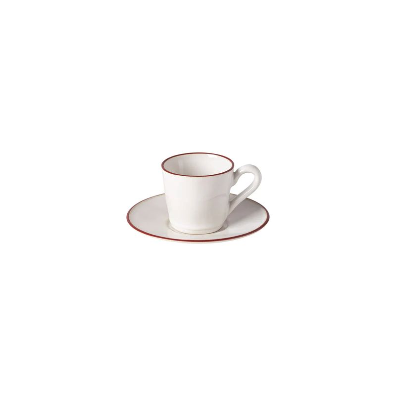 BEJA COFFEE CUP & SAUCER 0.08lt RED RIM STONEWARE COSTA NOVA