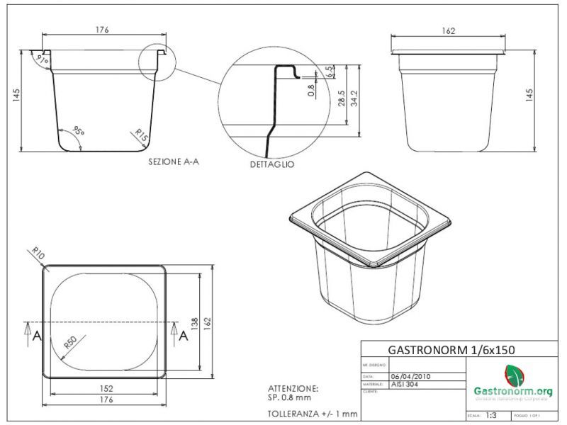 G/N CONTAINER S/STEEL 1/6 H 15cm PIAZZA