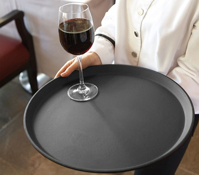 ROUND NON SLIP TREAD TRAY PP 14 INCH BLACK